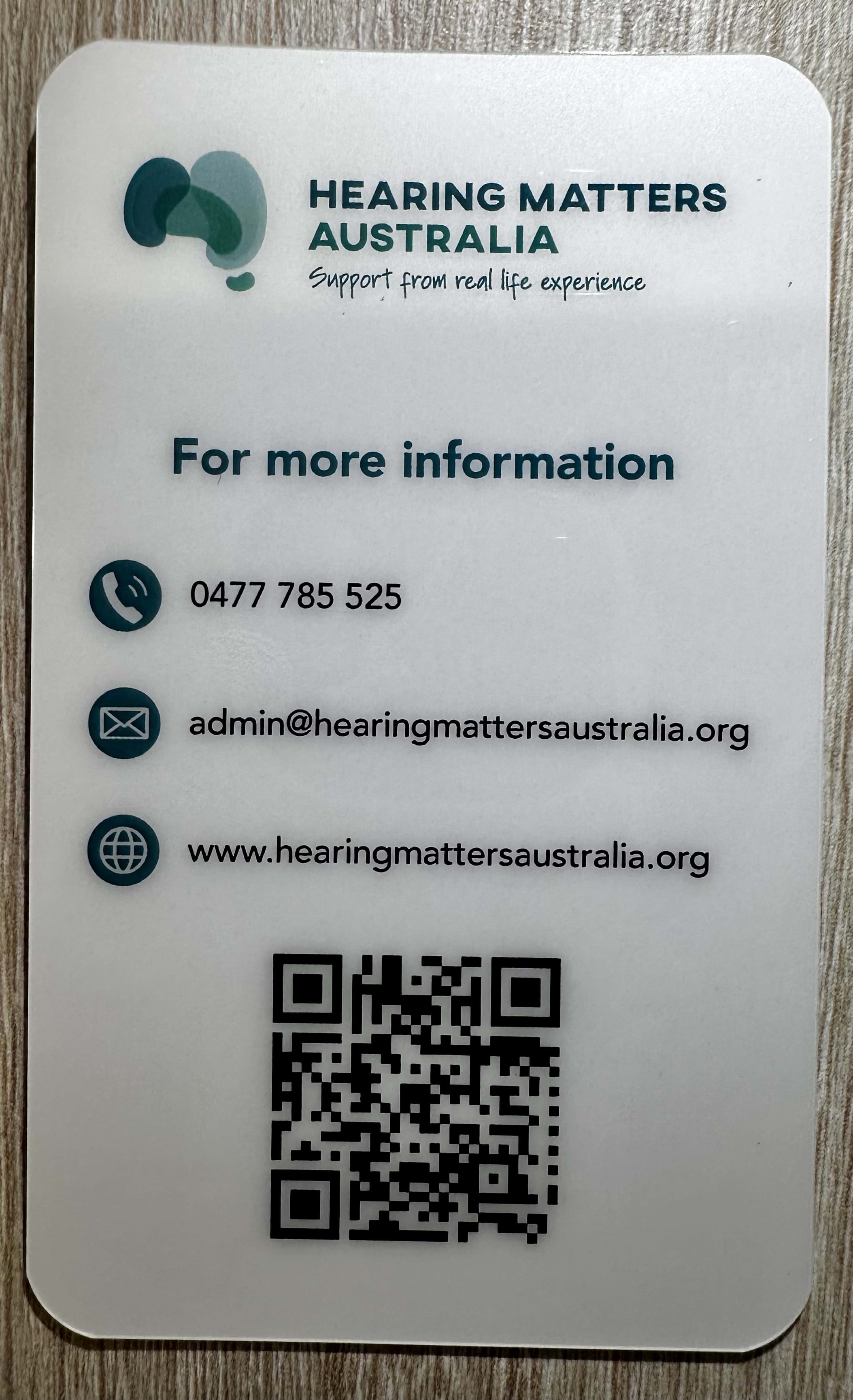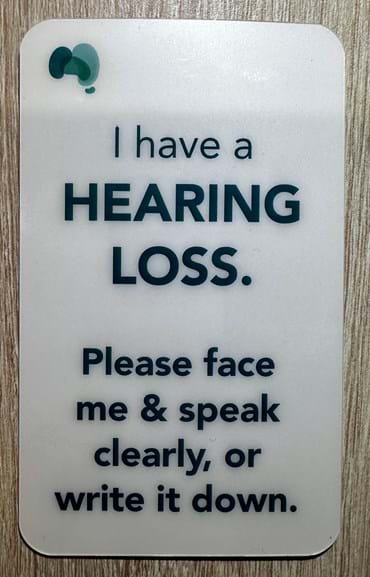 Hearing Matters Australia has developed the “Hearing Help" card to provide a simple, practical way to raise awareness. The card lets others know that hearing and understanding may be harder for you, and offers them a gentle way to assist.