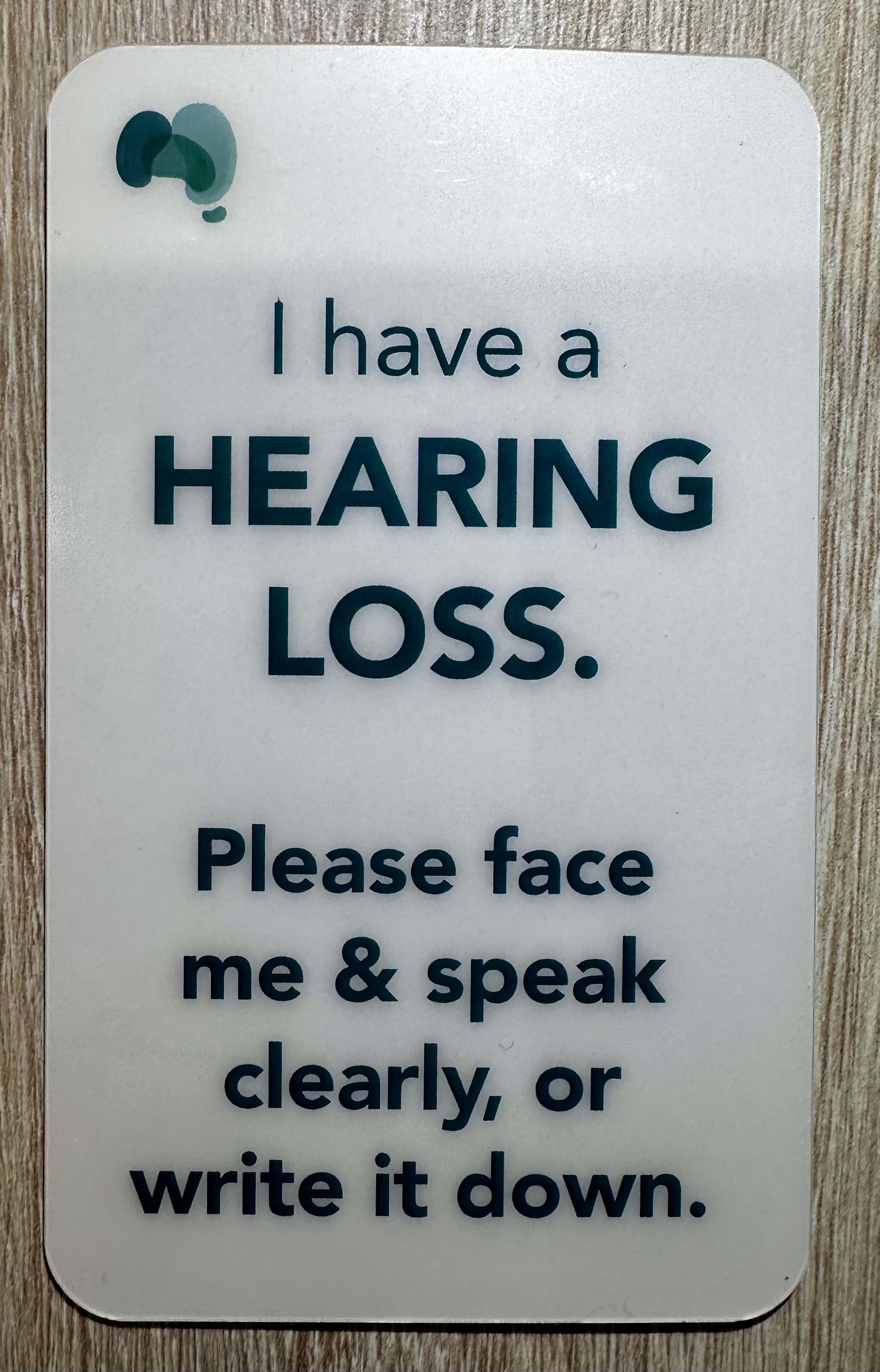 You can choose to pin the card to your clothing or carry it with you to show when needed. Our hope is that it helps make everyday communication a little easier.